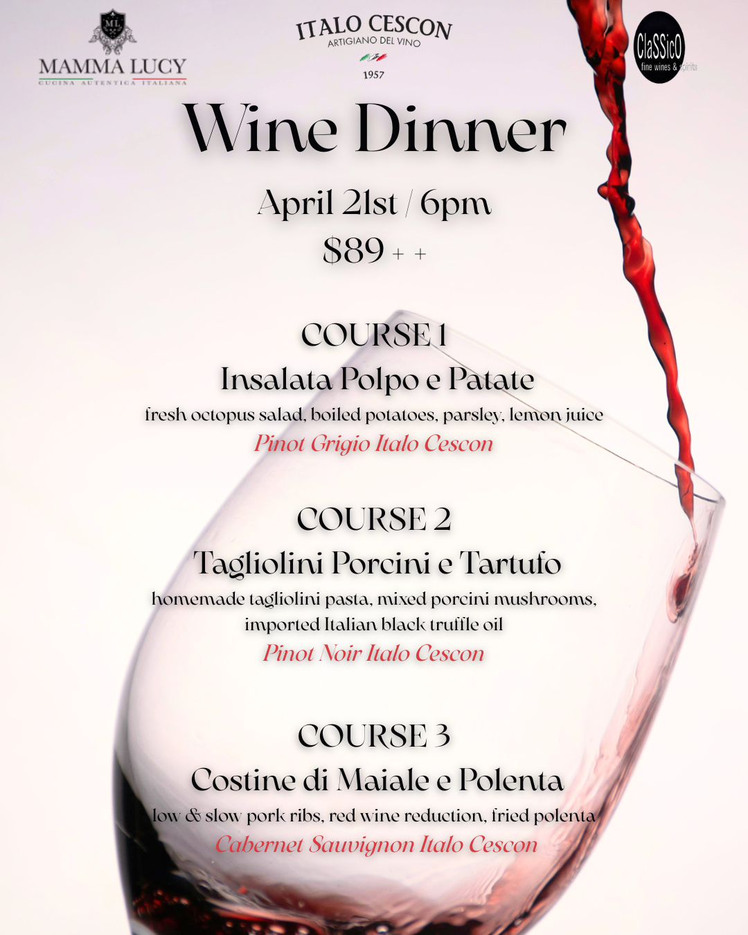 3 courses 3 pairings April 21st / 6pm Come join us!